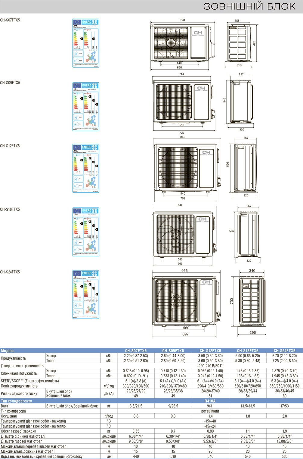 Розмір зовнішнього блоку 07 09 12 18 24 |