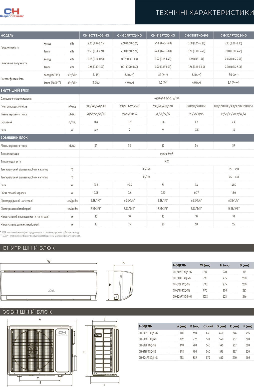 Розмір зовнішнього блоку 07 09 12 18 24 |