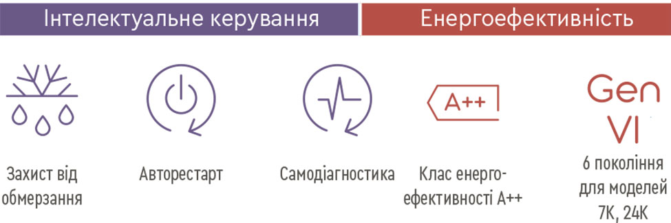 Продуктивність охолодження 7/9/12/18/24 | 2.2/2.6/3.5/5.0/7.1 кВт |