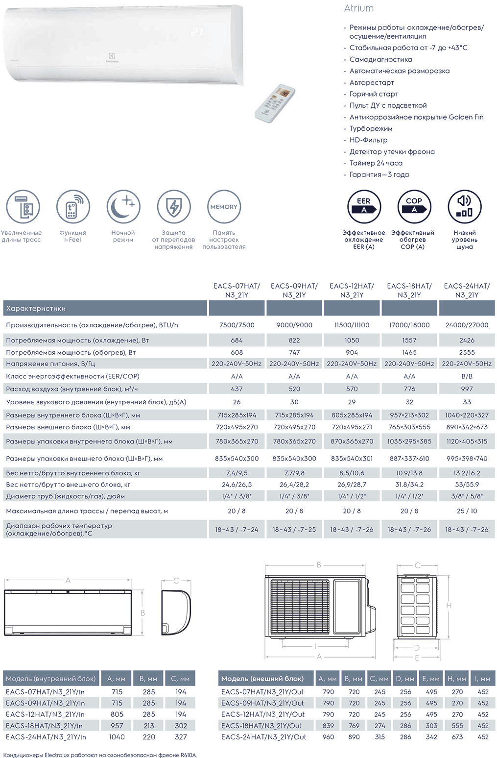 Кондиционер Electrolux серии Atrium. Обычный (не инверторный) компрессор, Робота на обогрев до -7°С, Енергоефективность класа А, Низкий уровень шума 26 дБ, Пр-во Гонконг, Гарантия 3 года.