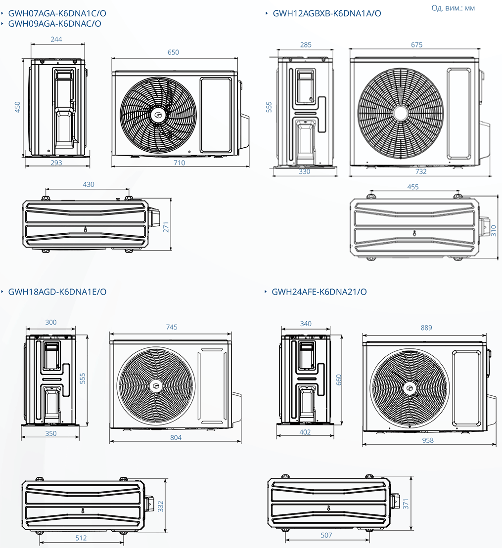 Розмір зовнішнього блоку 07 09 12 18 24 |