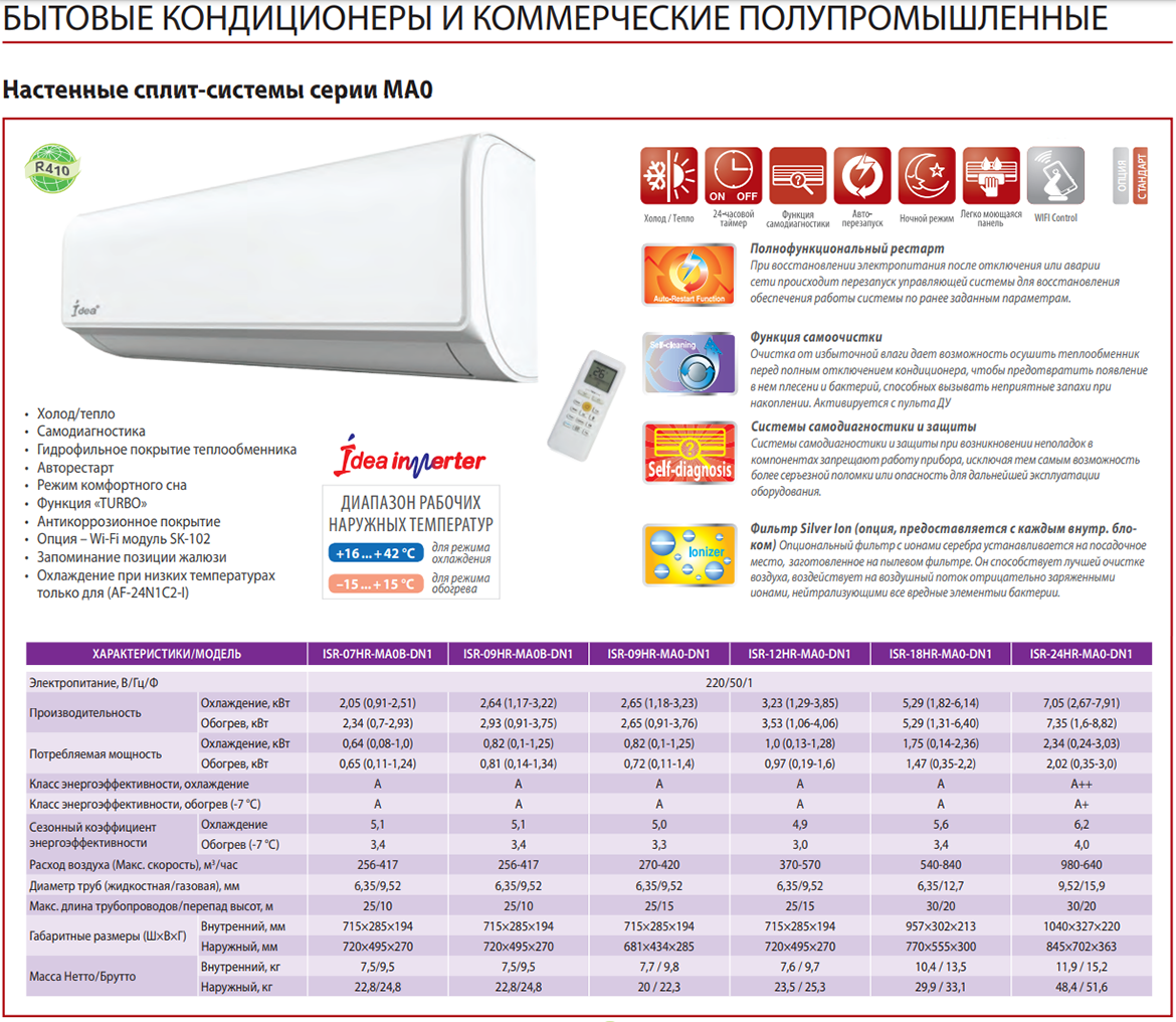 Кондиционер Idea серии Diamond. Инверторный компрессор, Энергоэффективность класса А+, Работа на обогрев до -15°С, Wi-Fi модуль опция (970 грн), Низкий уровень шума 24 дБ, Пр-во Гонконг, Гарантия 2 года.