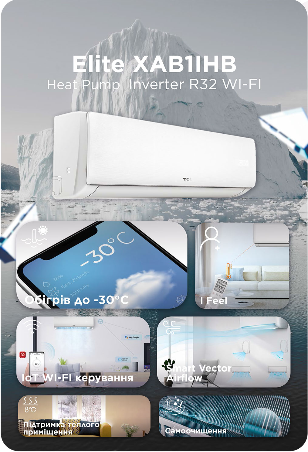 Кондиціонер TKS. Інверторний компресор, Енергоефективність класу А++, Робота на обігрів до -30°С, Низький рівень шуму 24 дБ, Wi-Fi модуль, Фреон R32, Гонконг, Гарантія 3 роки.